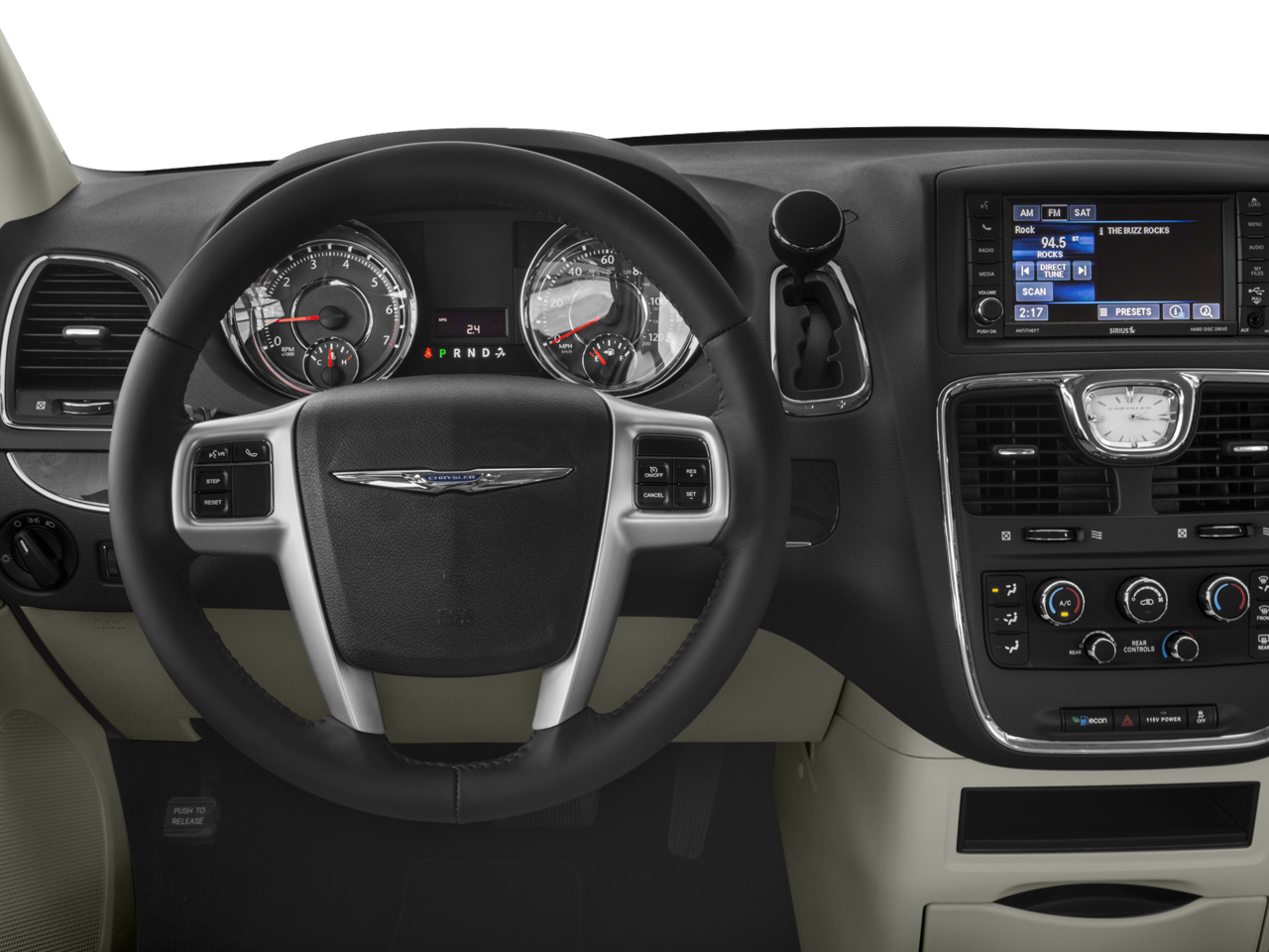 The cabin of our Touring is much like your family room on wheels, complete with comfortable leather seating, reclining Stow 'n Go second-row bucket seats, full power accessories, and tri-zone climate control. Single-disc DVD entertainment, Bluetooth® hands-free calling, and the Uconnect® interface keep everyone entertained and content.